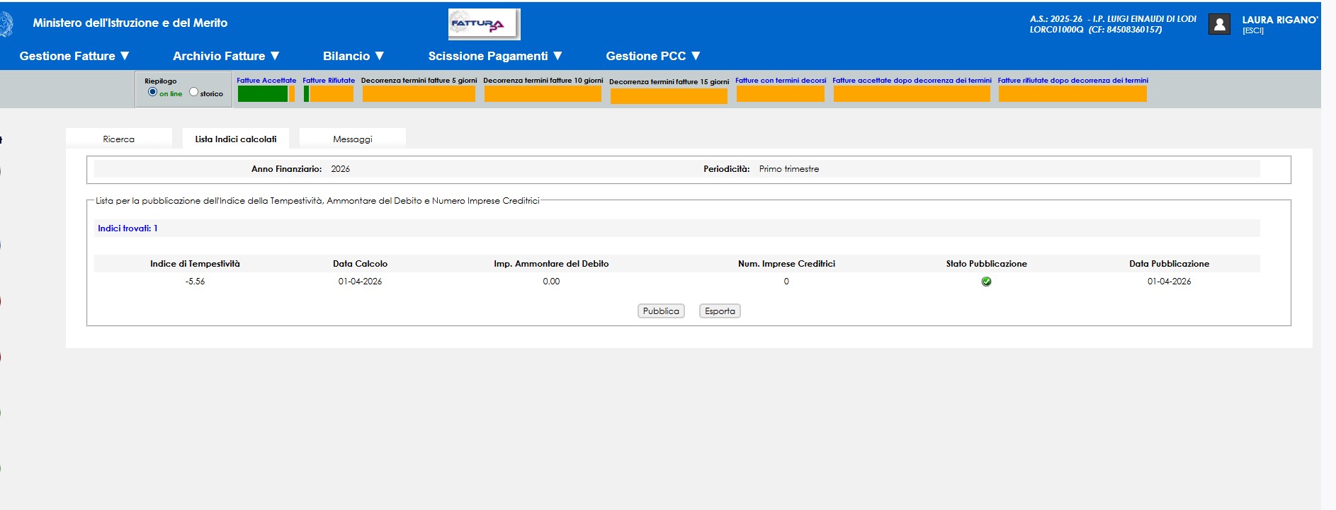 INDICE DI TEMPESTIVITA' DEI PAGAMENTI E AMMONTARE DEBITI - I TRIMESTRE 2026