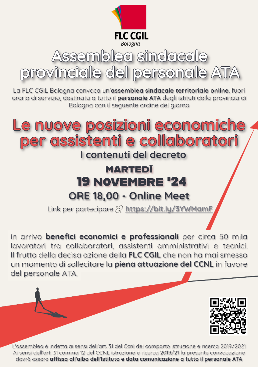 FLC CGIL - Posizioni economiche ATA - Convocazione assemblea sindacale provinciale di tutto il personale ATA - 19 NOVEMBRE 24