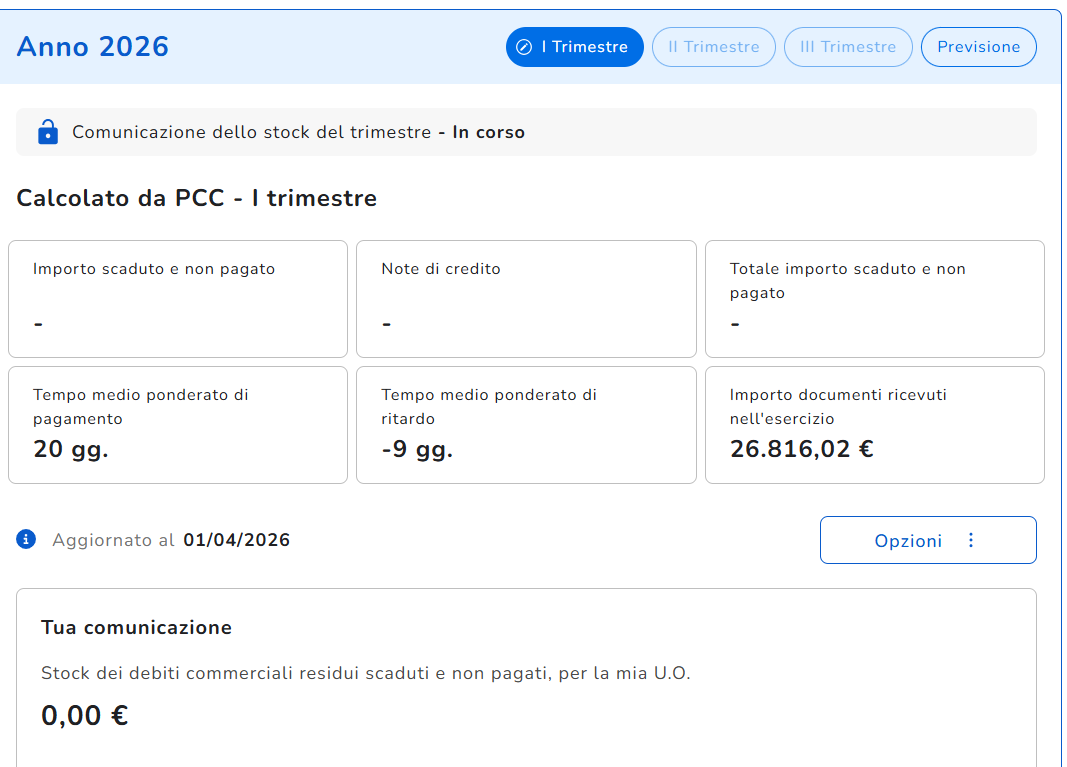 Indice tempestività dei pagamenti Primo Trimestre 2026