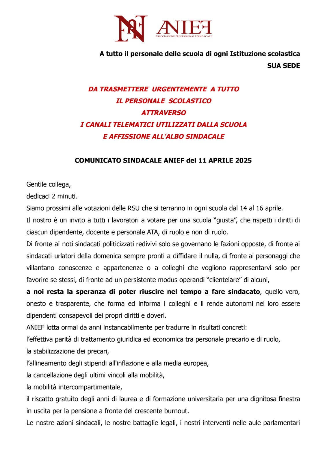 Fwd: Lettera ANIEF VENETO