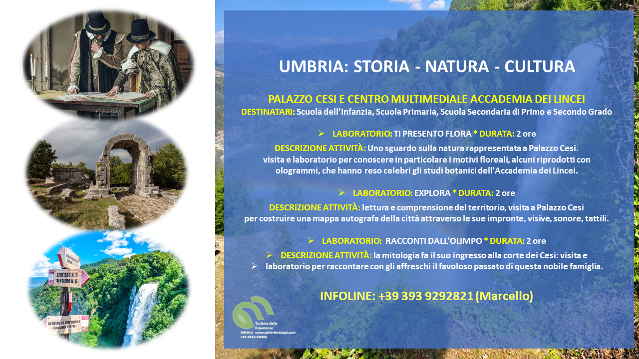 LABORATORI NATURALISTICI, STORICI e SCIENTIFICI: CASCATA DELLE MARMORE. PALAZZO CESI. AREA ARCHEOLOGICA CARSULAE