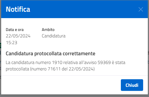 CANDIDATURA NUMERO 1910 RELATIVA ALL’AVVISO 59369 PIANO ESTATE- RICEVUTA PROTOCOLLO