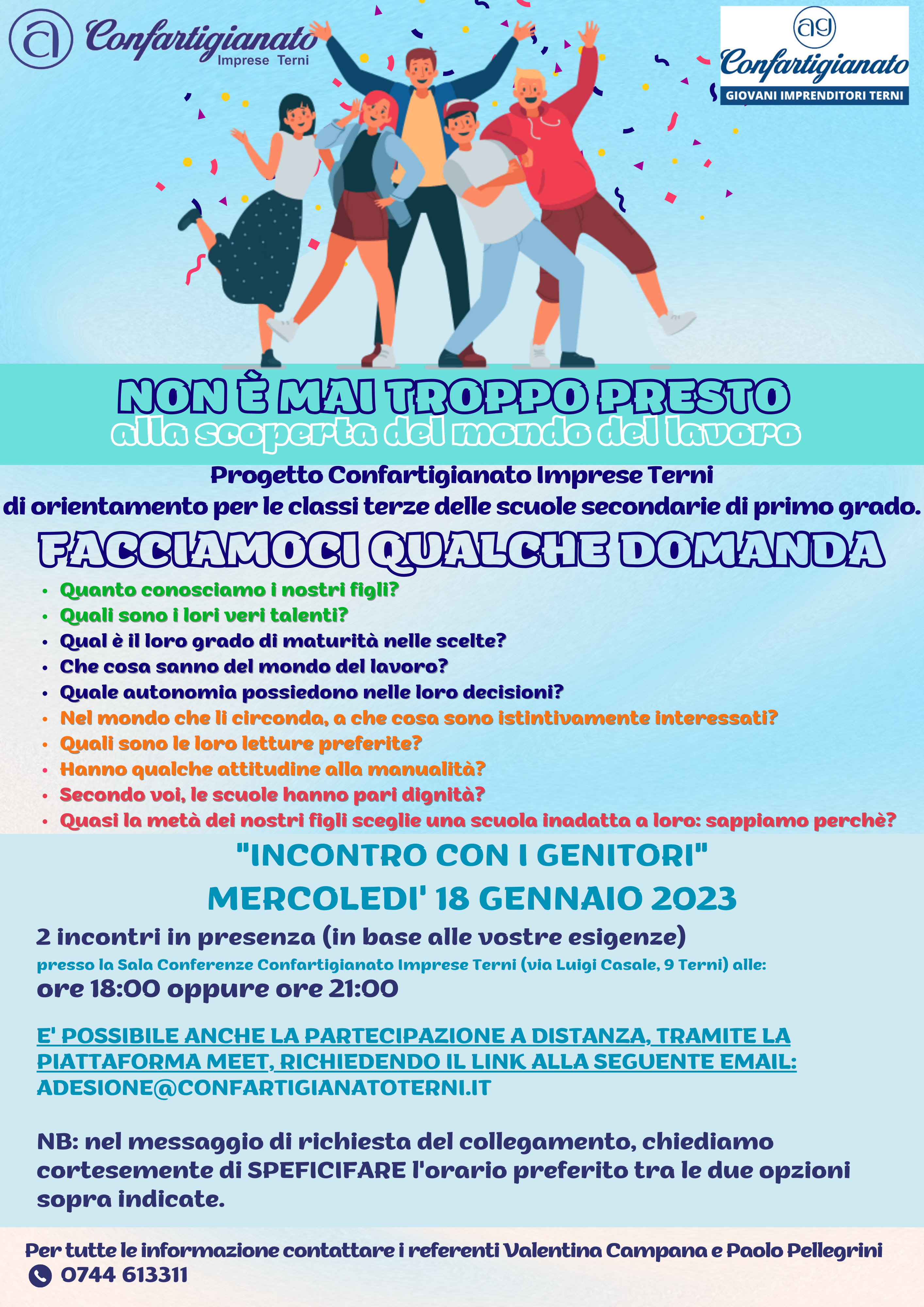 Confartigianato-Imprese Terni ed il Mondo della Scuola-Progetto 'Scuola e Lavoro l'importanza di una scelta consapevole'- Anno scolastico 2022-2023