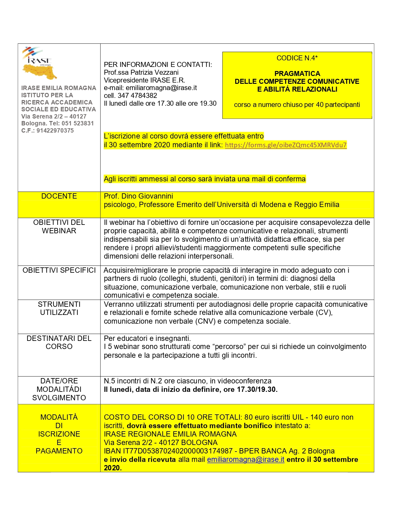 IRASE Emilia Romagna | Proposte formative mese di Settembre nuovo calendario corsi