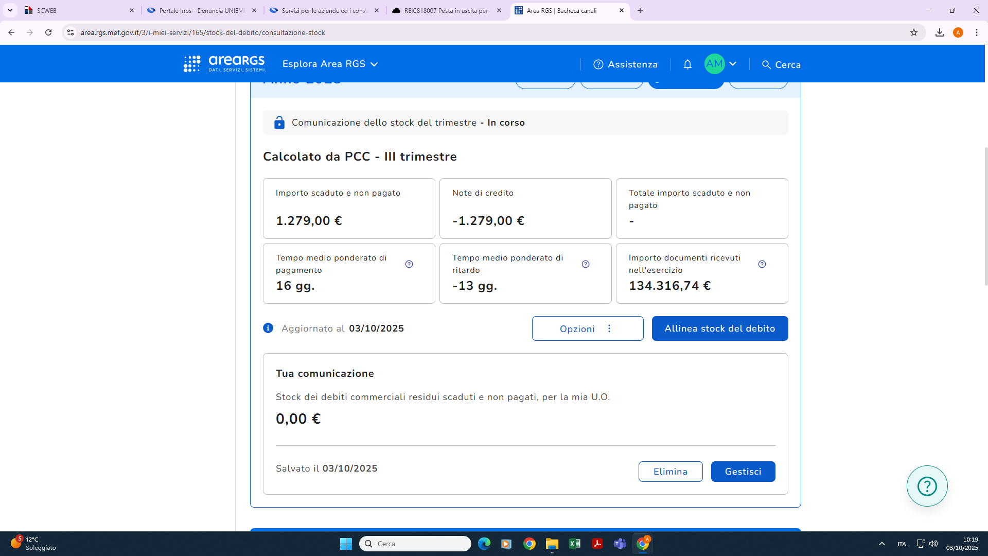 PUBBLICAZIONE AMMONTARE COMPLESSIVO DEI DEBITI E NUMERO IMPRESE CREDITRICI III TRIMESTRE