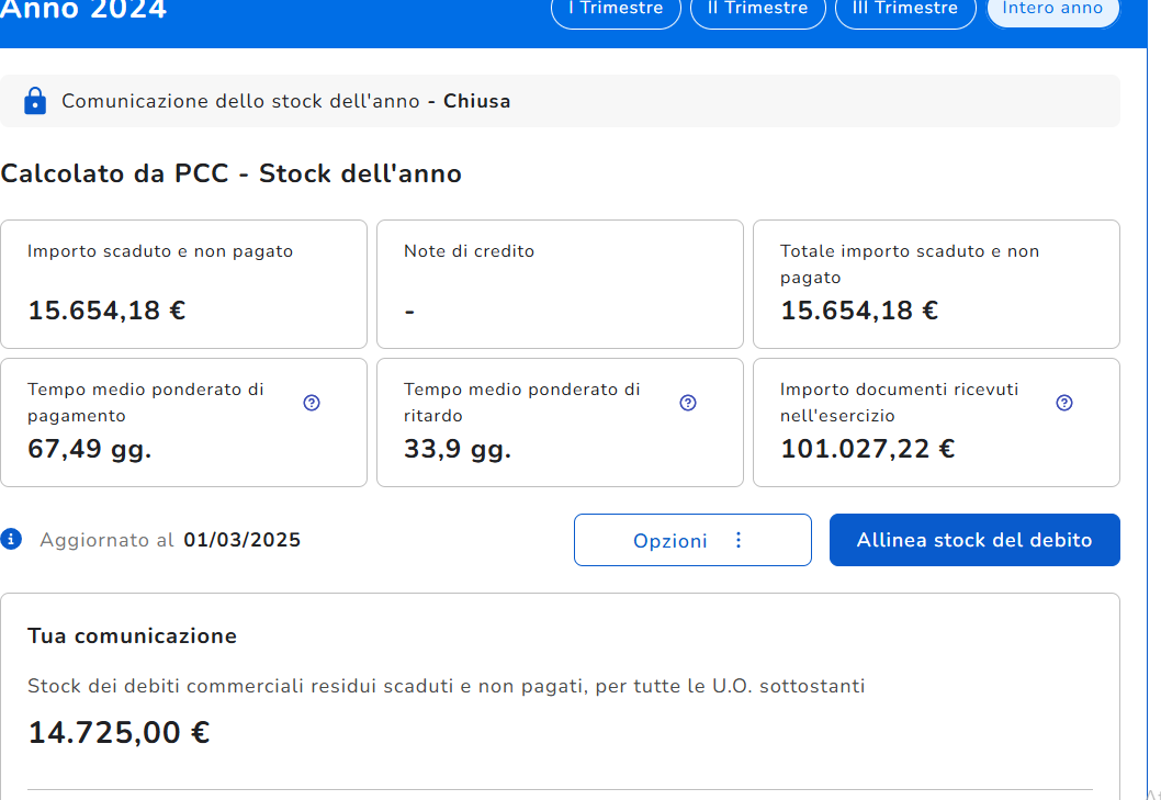 Indice della Tempestività , Ammontare del Debito e Numero Imprese Creditrici IV° trimestre 2024 (Periodo dal 01/10/2024 al 31/12/2024) e Annualità A.F. 2024 (Periodo dal 01/01/2024 al 31/12/2024)