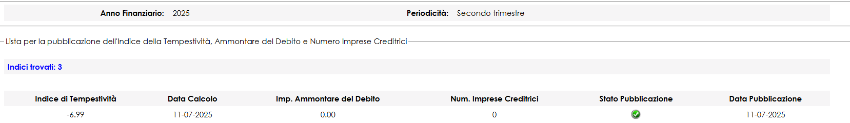 PUBBLICAZIONE INDICI DI TEMPESTIVITÀ II TRIMESTRE 2025