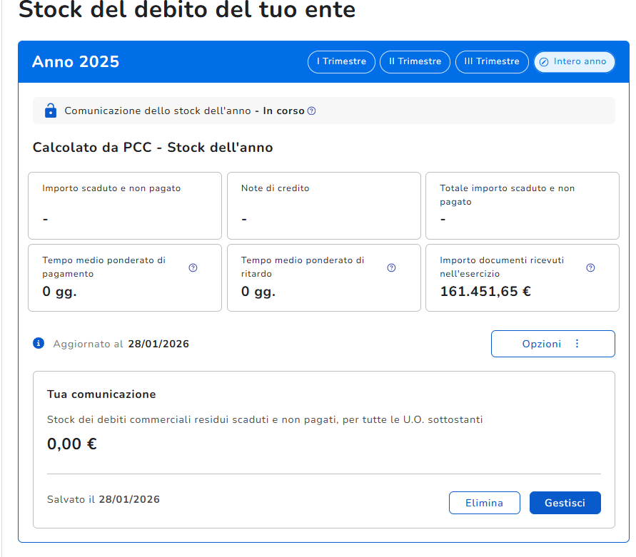 COMUNICAZIONE STOCK DEL DEBITO E.F. 2025