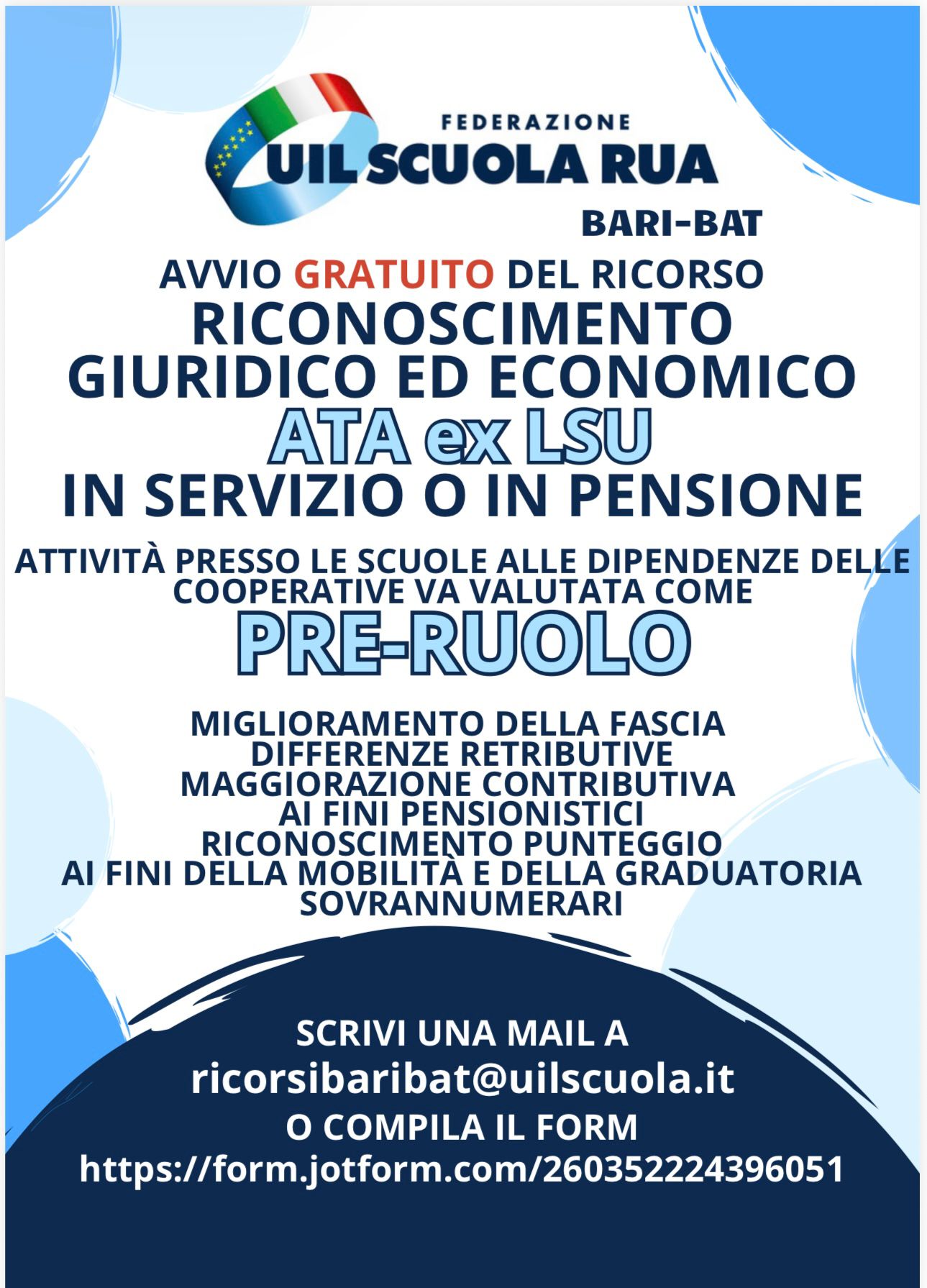 AVVIO GRATUITO DEL RICORSO RICONOSCIMENTO GIURIDICO ED ECONOMICO ATA EX LSU