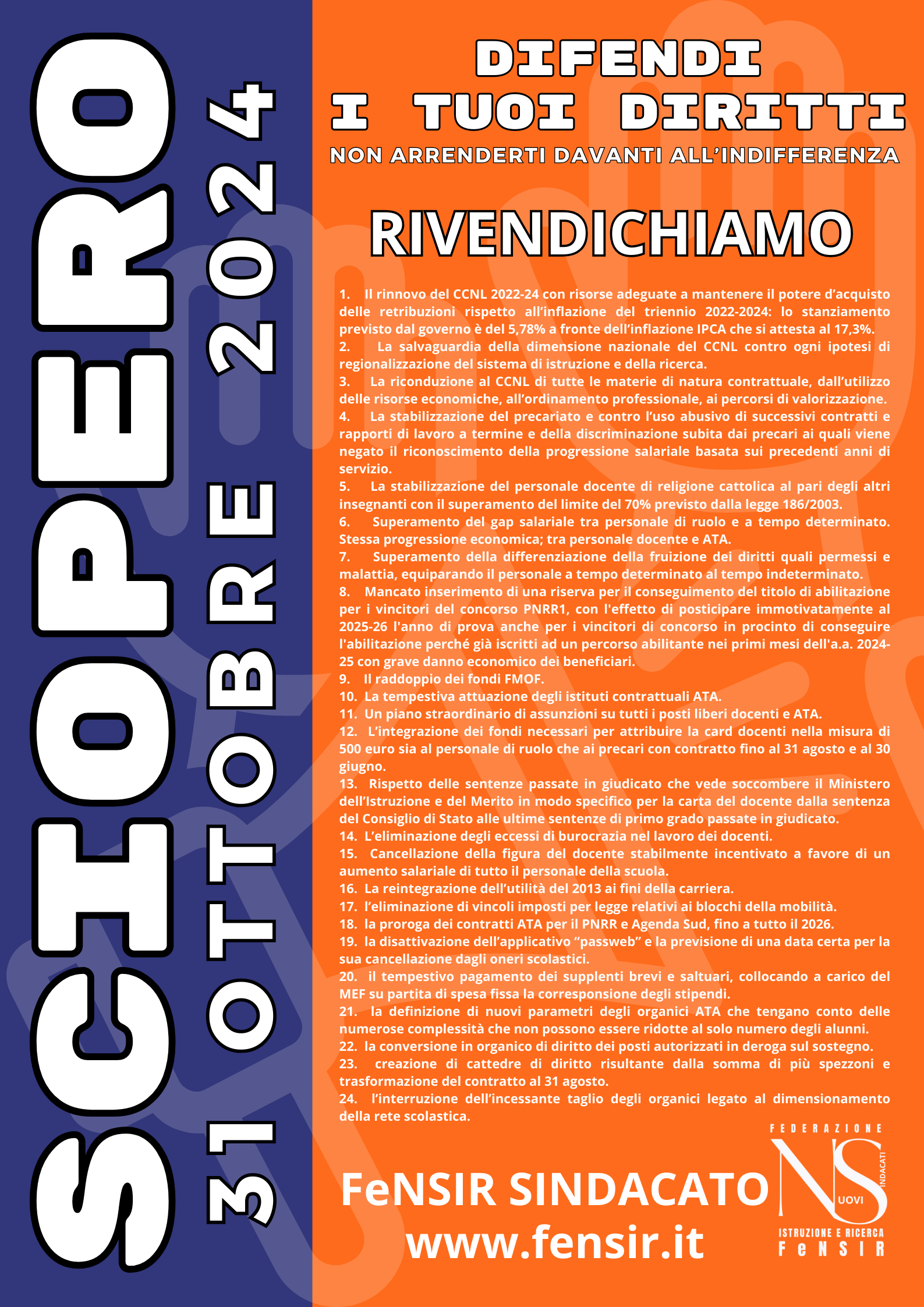 [INFORMAZIONI SINDACALI E INIZIATIVE] A TUTTO IL PERSONALE - LA FENSIR PROCLAMA LO SCIOPERO DEL 31 OTTOBRE 2024