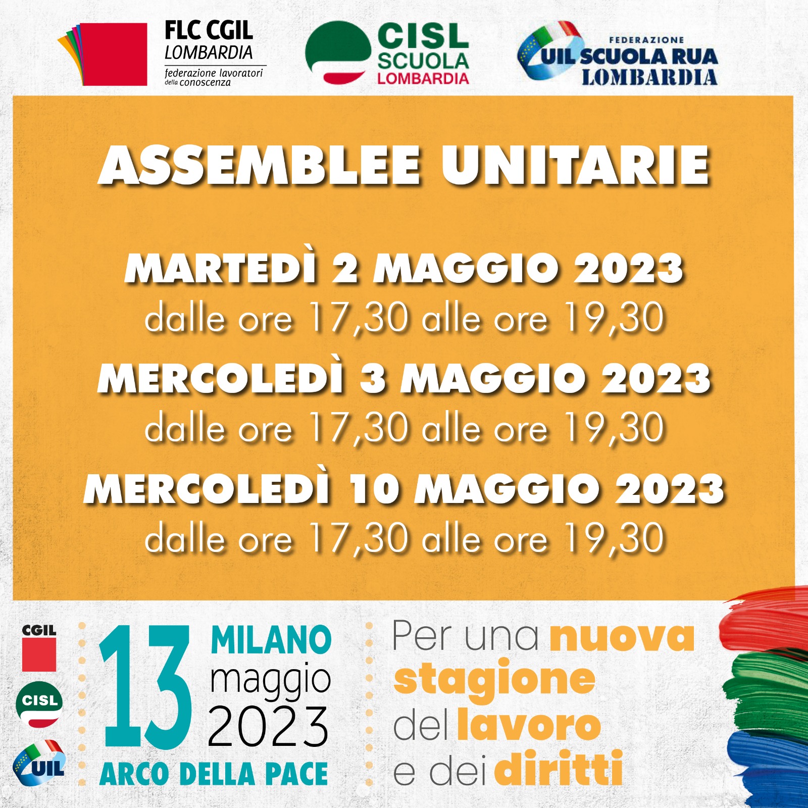 ASSEMBLEE UNITARIE IN PREPARAZIONE DEL GIORNO 13 MAGGIO