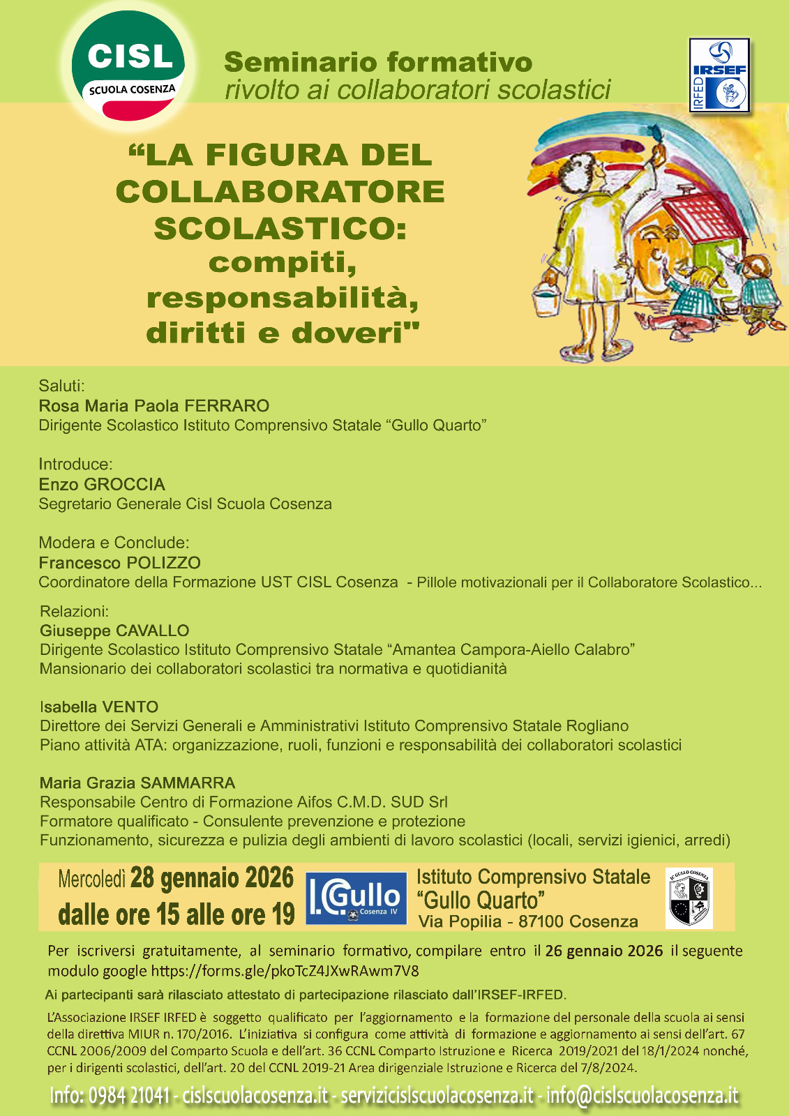 SEMINARIO GRATUITO :" LA FIGURA DEL COLLABORATORE SCOLASTICO:COMPITI,RESPONSABILITA', DIRITTI E DOVERI"