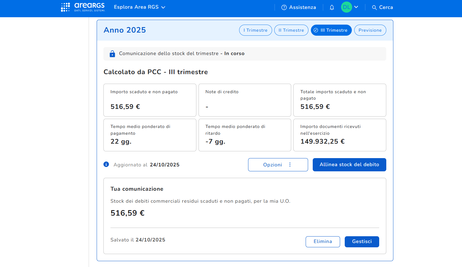 PCC - COMUNICAZIONE DELO STOCK DEL DEBITO III TRIMESTRE