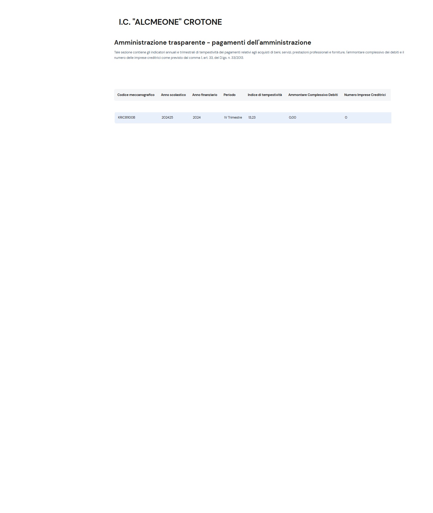 Indice di tempestività dei pagamenti QUARTO trimestre 2024