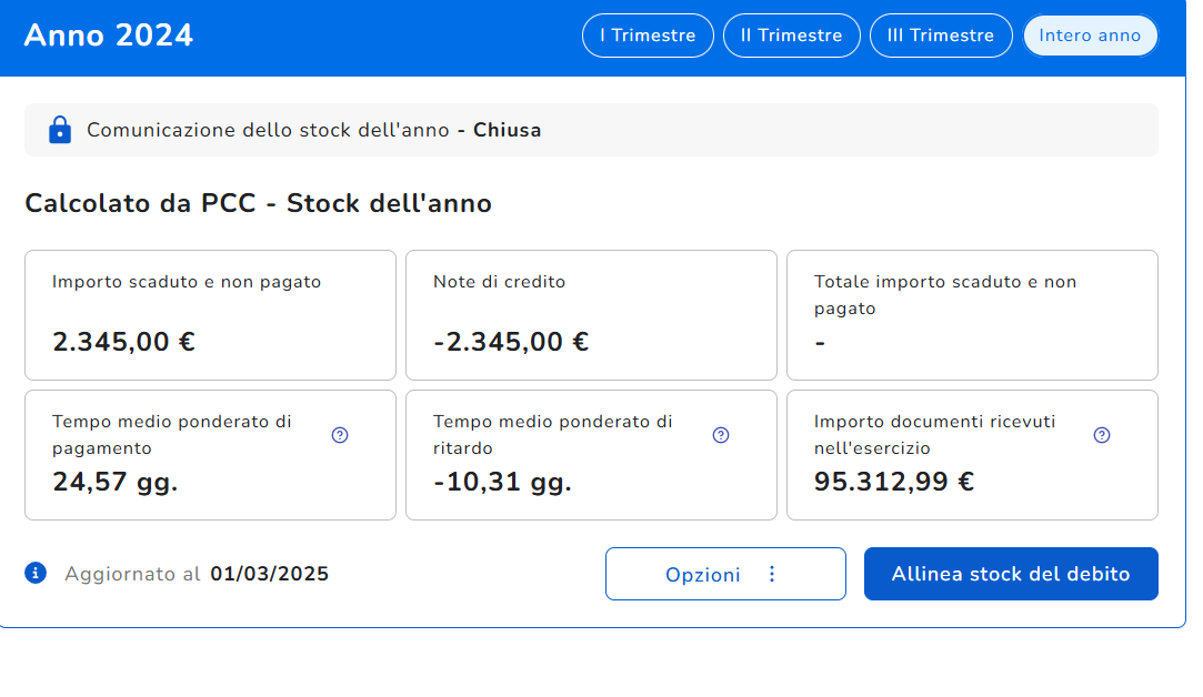 pubblicazione indice di tempestività quarto trimestre 2024 e annuale 2024/ ammontare del debito annuale 2024