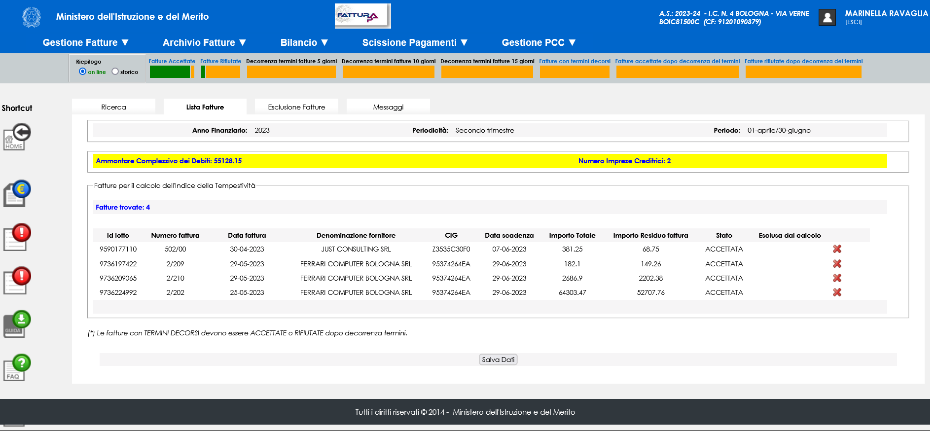 Indice di tempestività pagamenti e ammontare complessivo debiti secondo trimestre 2023
