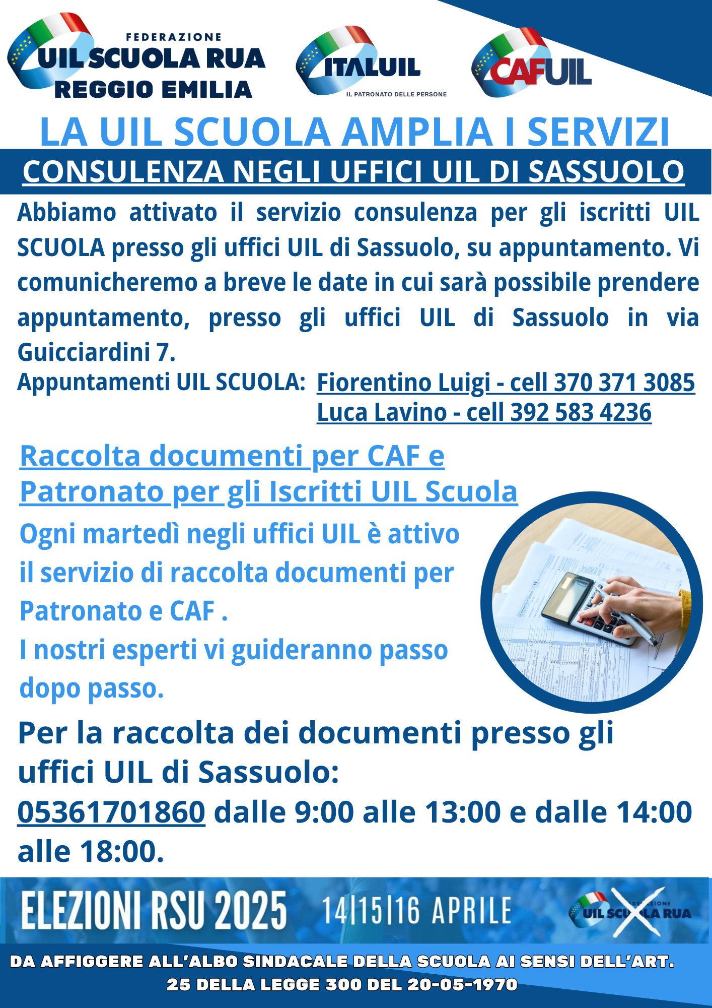 POSTA CERTIFICATA: APERTURA CONSULENZE UIL SCUOLA PRESSO GLI UFFICI UIL DI SASSUOLO PER LA ZONA PEDEMONTANA