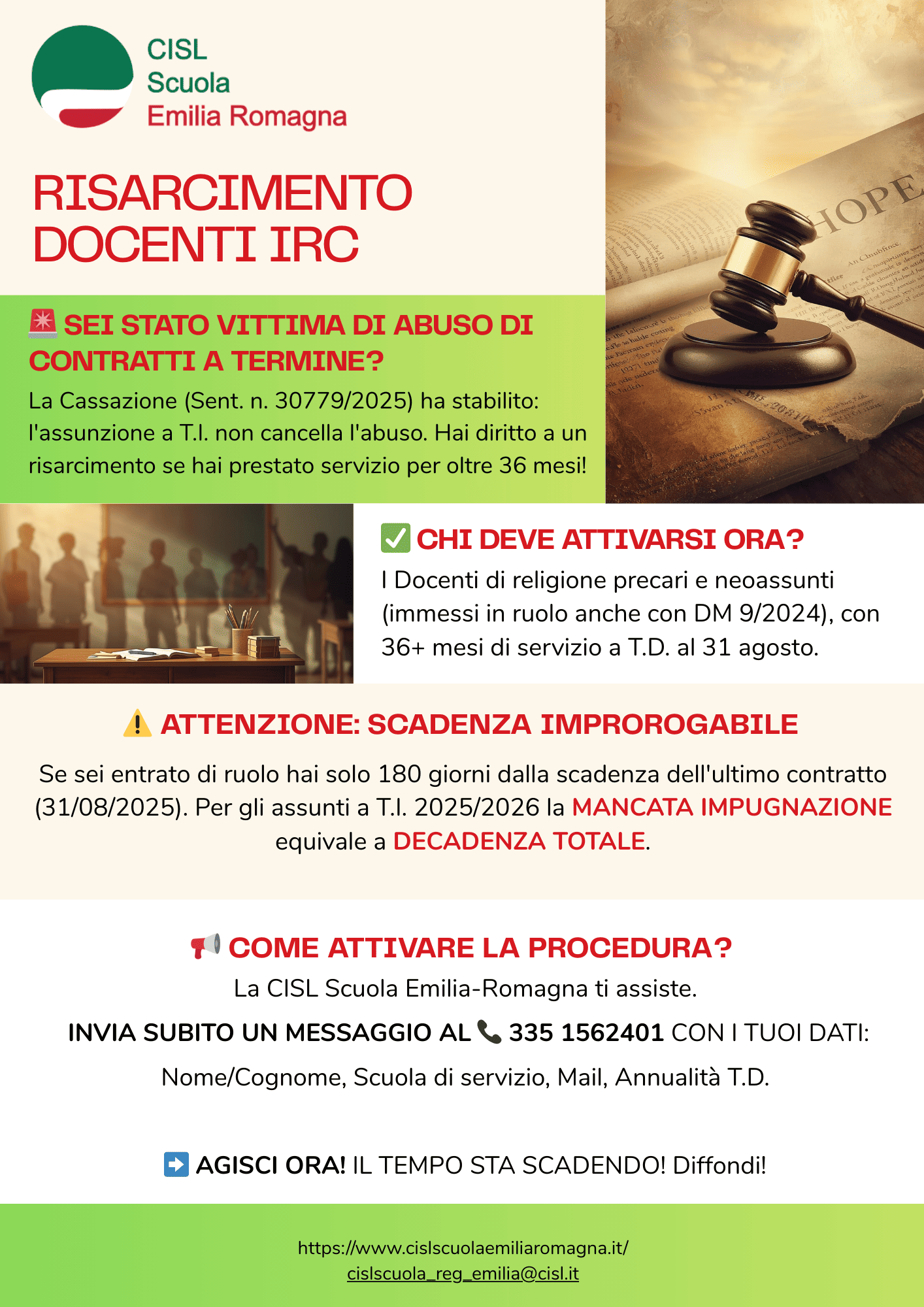 Trasmissione volantino docenti IRC – Informativa CISL Scuola Emilia-Romagna