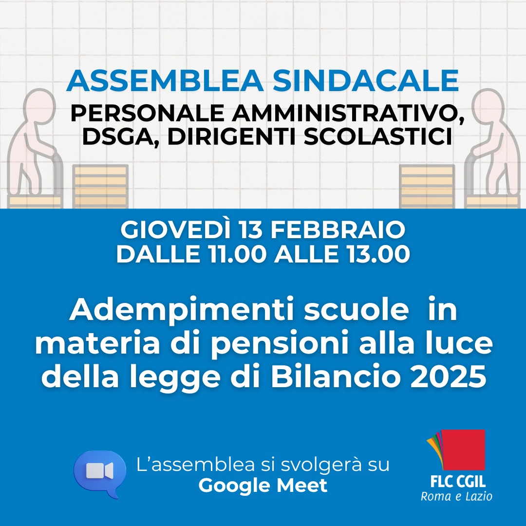 Convocazione Assemblea Sindacale online DS,DSGA, AA del Lazio - 13 febbraio 2025