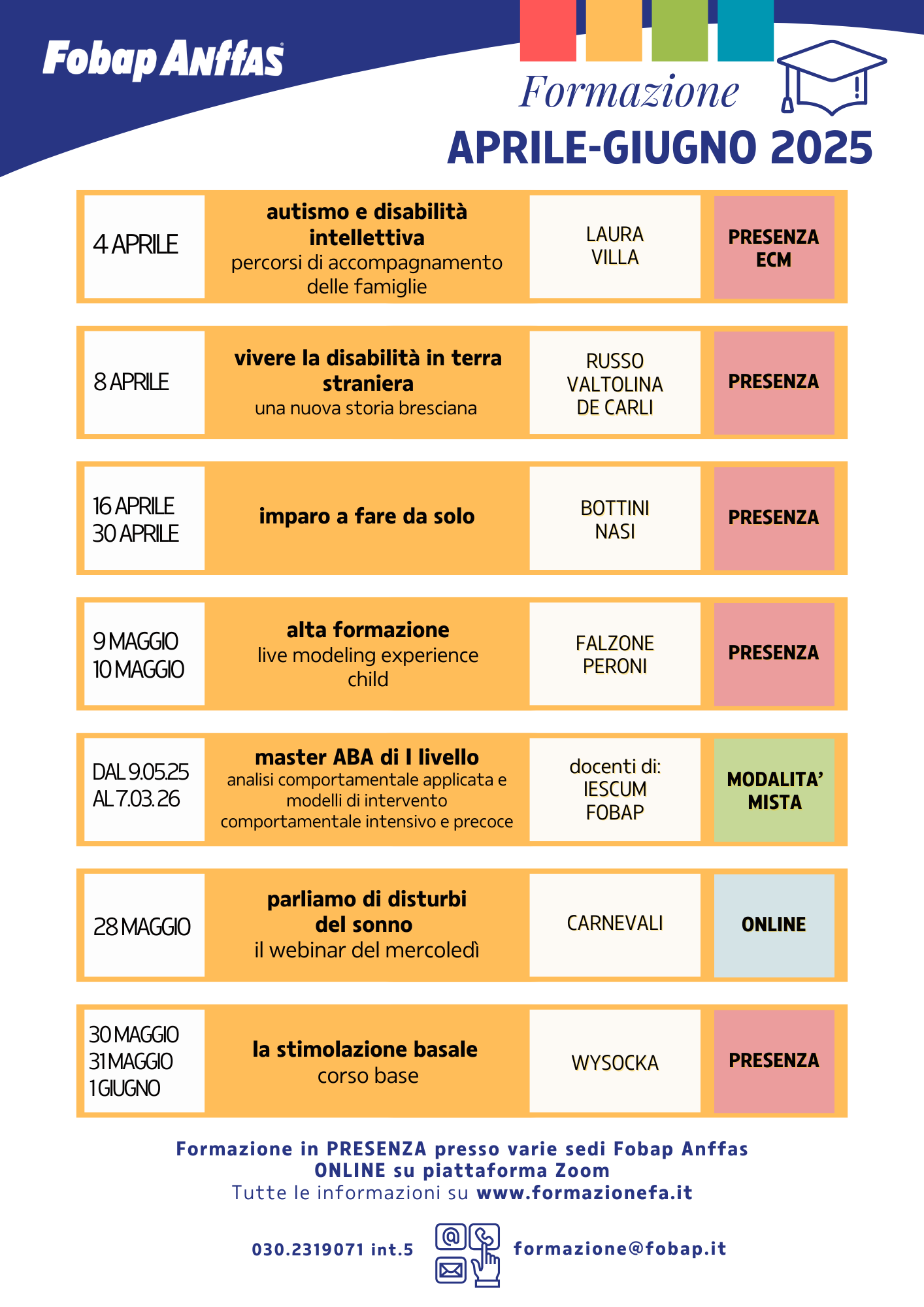 promozione corsi FOBAP-ANFFAS BRESCIA aprile-giugno 2025