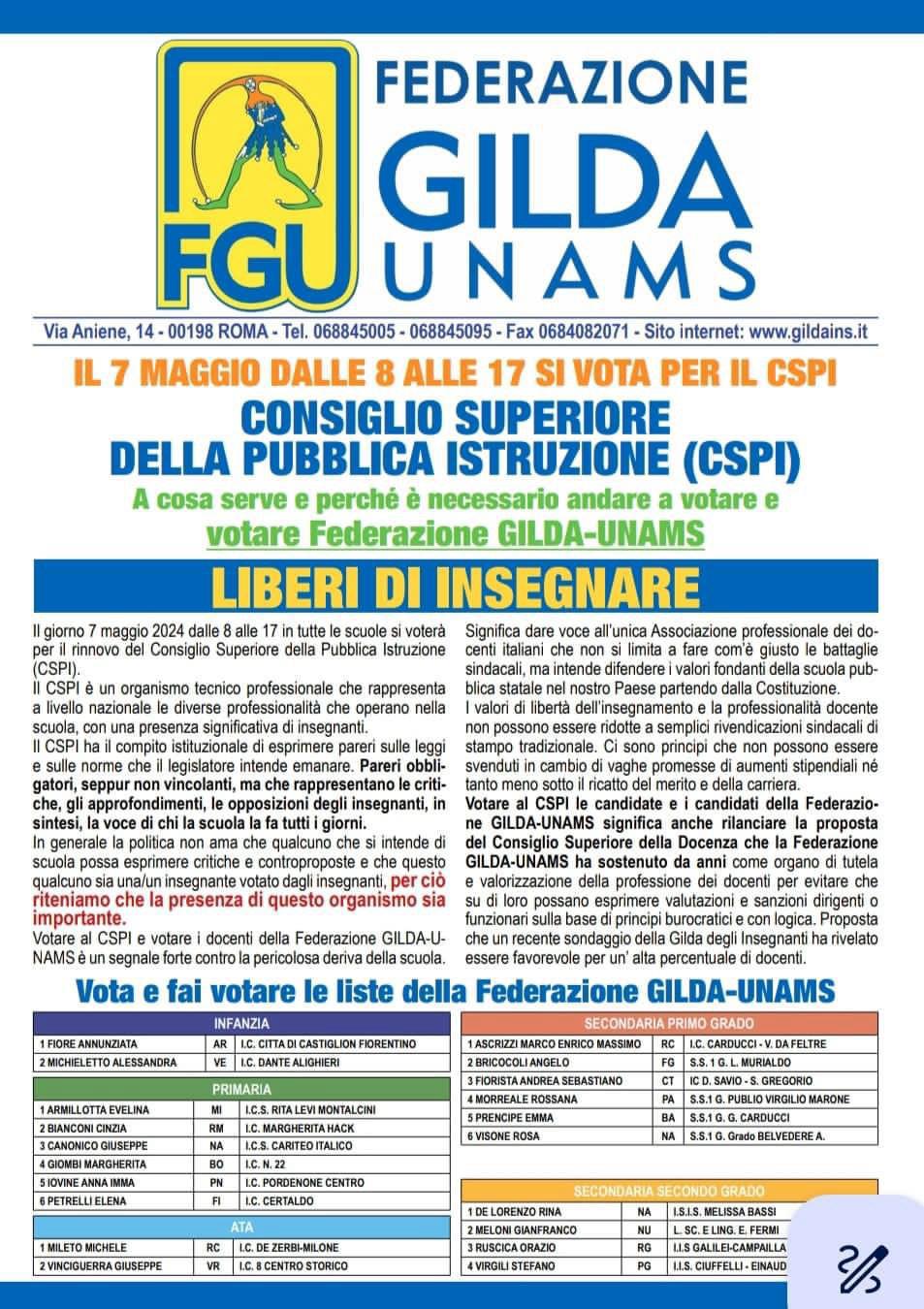 COMUNICATO SINDACALE ELEZIONI CSPI