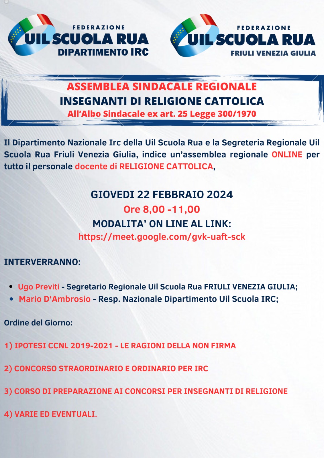 ERRATA CORRIGE-ASSEMBLEA SINDACALE REGIONALE - INSEGNANTI DI RELIGIONE CATTOLICA