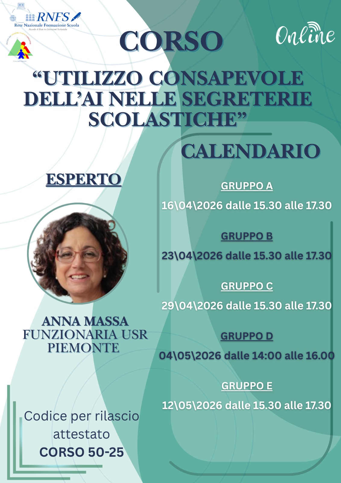 RETE NAZIONALE FORMAZIONE SCUOLA - AVVIO ISCRIZIONI CORSO FORMATIVO “UTILIZZO CONSAPEVOLE DELL'AI NELLE SEGRETERIE SCOLASTICHE”
