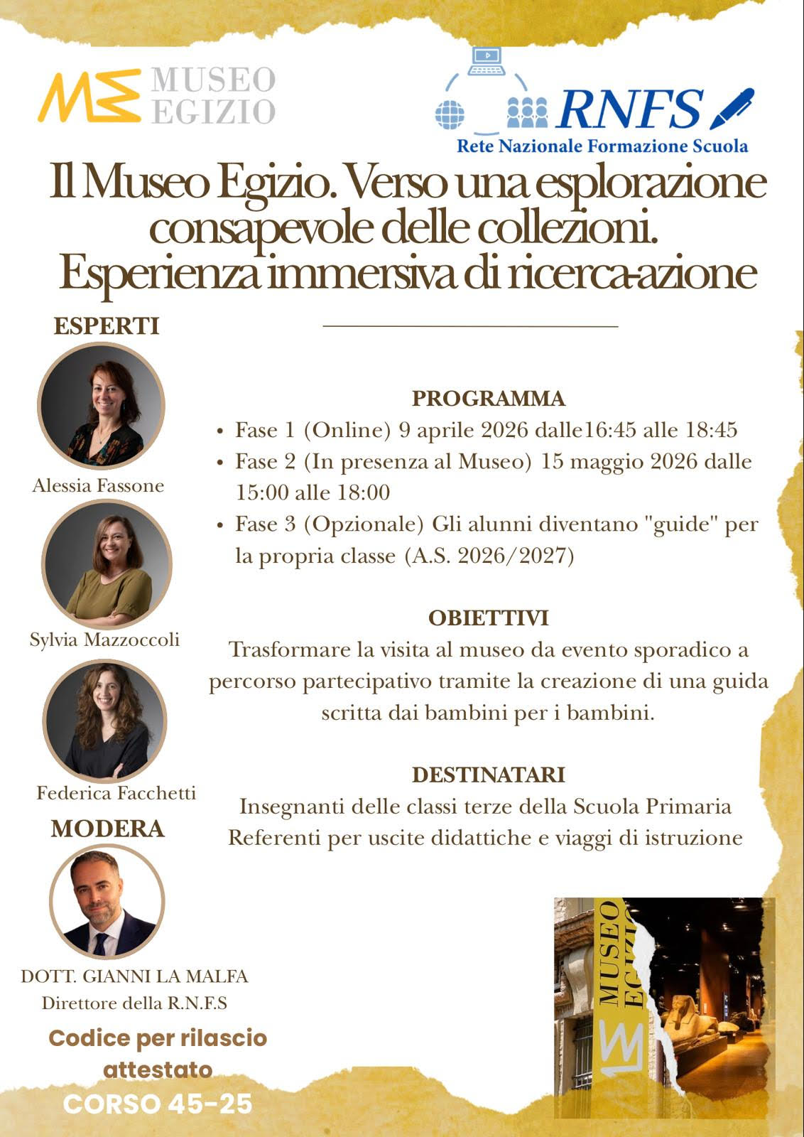 RETE NAZIONALE FORMAZIONE SCUOLA - REMIND AVVIO ISCRIZIONI PERCORSO FORMATIVO RNFS “IL MUSEO EGIZIO. VERSO UNA ESPLORAZIONE CONSAPEVOLE DELLE COLLEZIONI. ESPERIENZA IMMERSIVA DI RICERCA-AZIONE” – A.S. 2025/2026