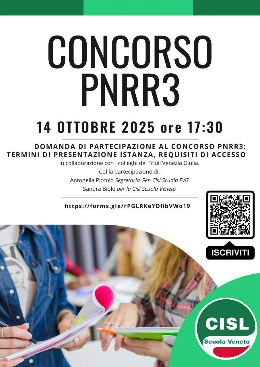 CISL SCUOLA VENETO: AVVISO WEBINAR SUL CONCORSO PNRR3 (14/10/2025, ORE 17:30)