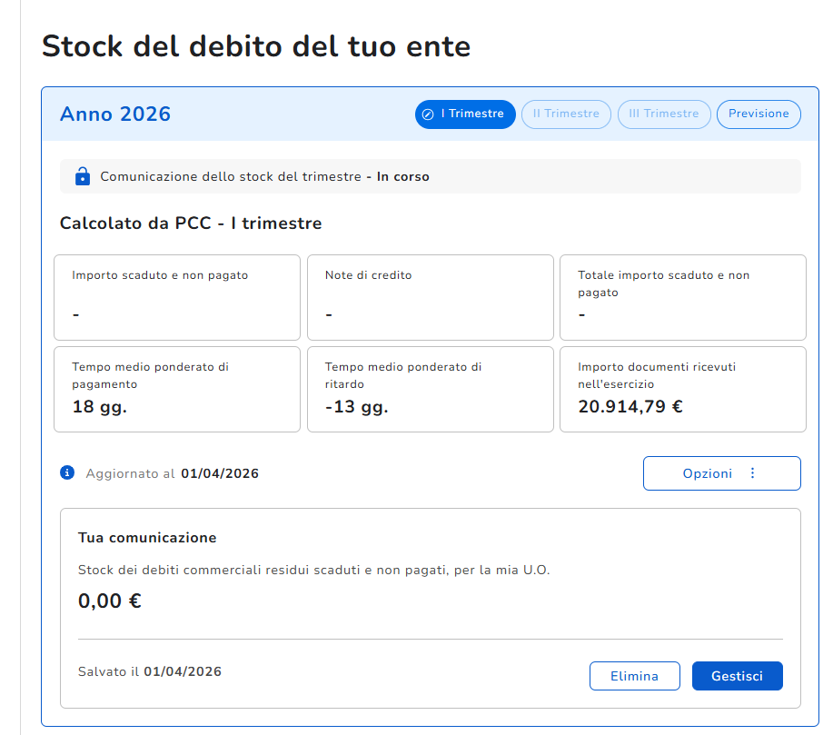 INDICE DI TEMPESTIVITÀ PRIMO TRIMESTRE E STOCK DEL DEBITO