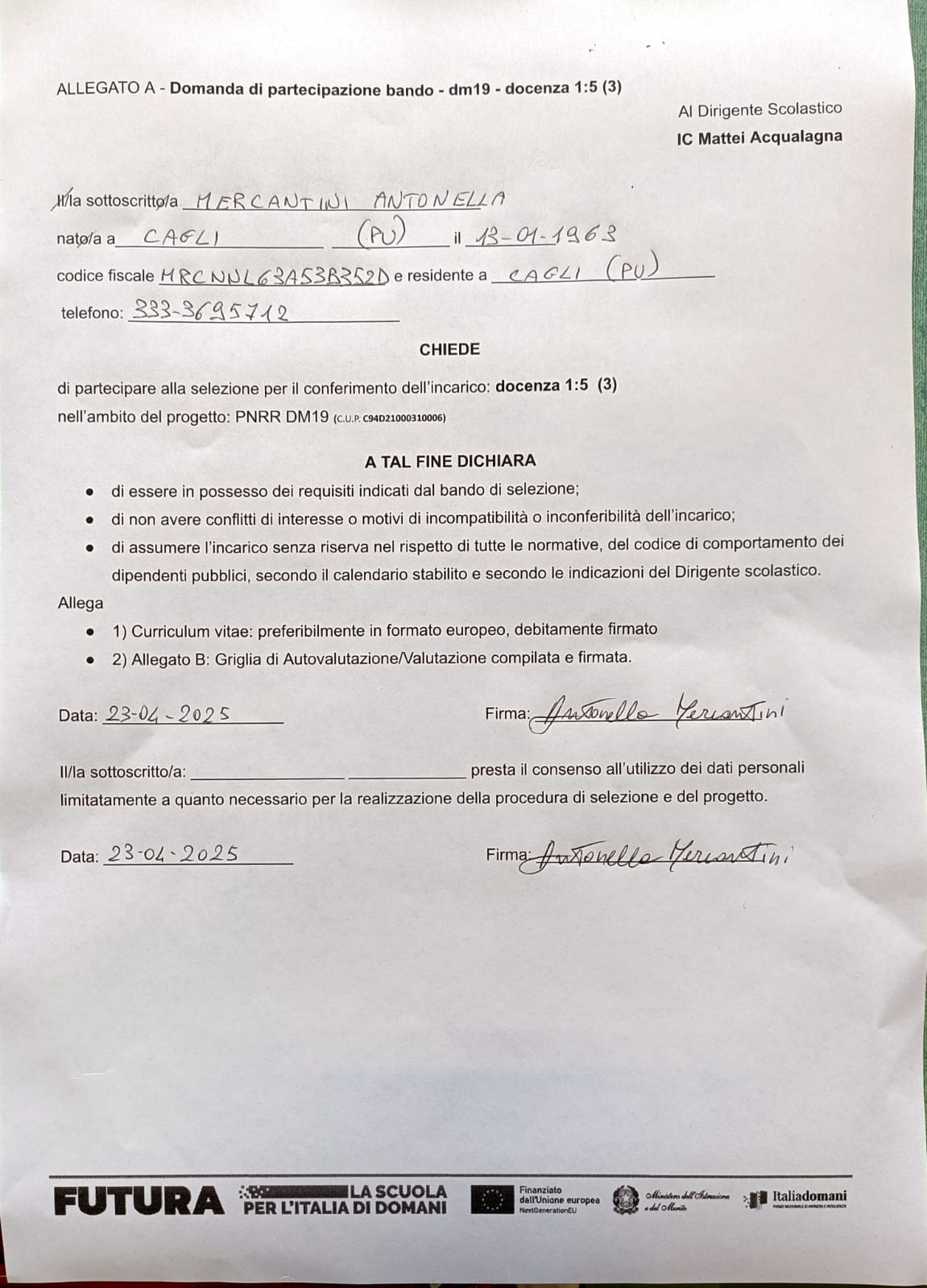 CANDIDATURA PROGETTO PNRR DM19 ANTONELLA MERCANTINI