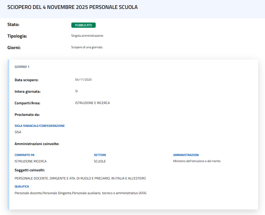 Sciopero SISA del 04/11/2025