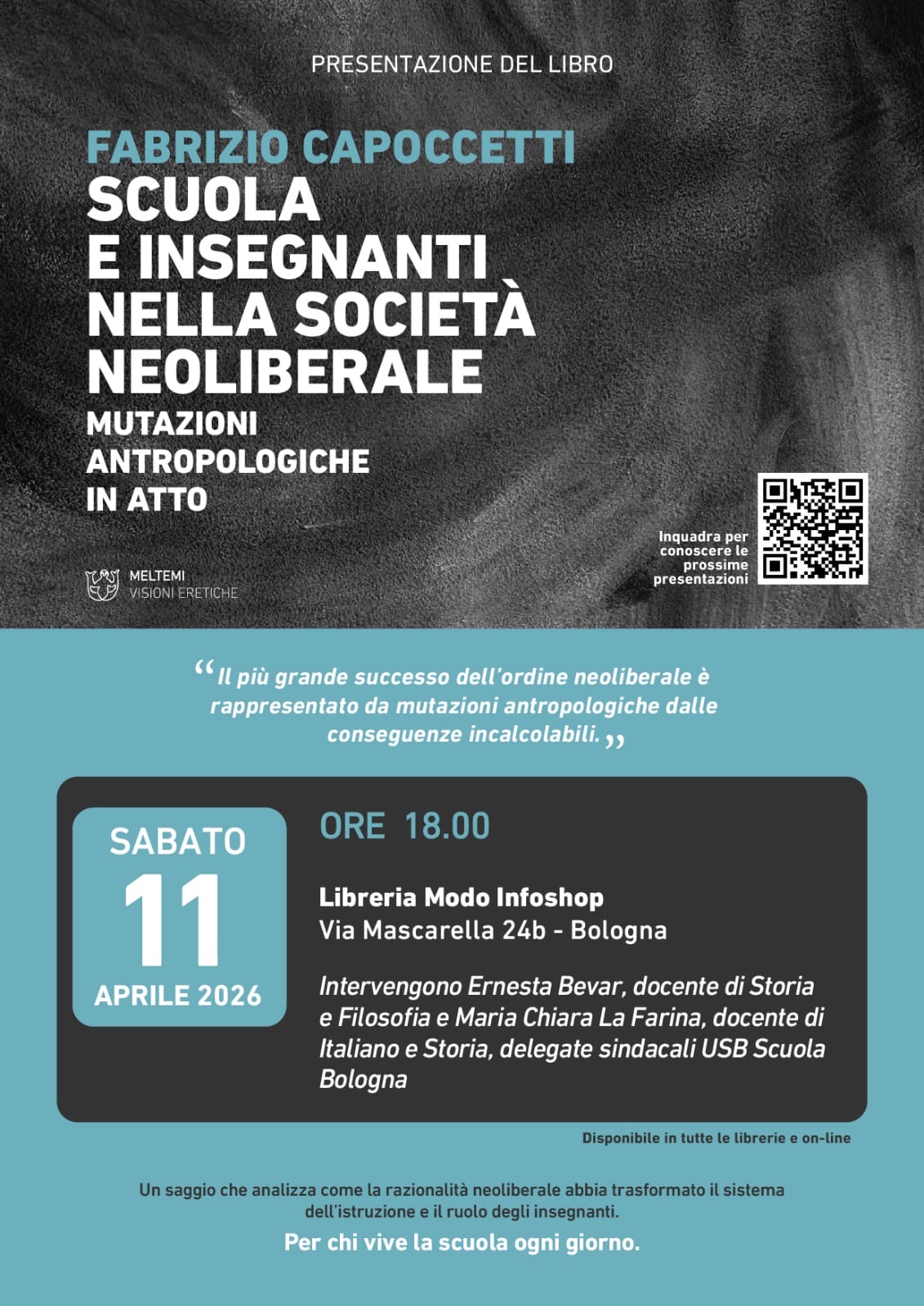 Appuntamenti USB Scuola Bologna: presentazione libri 11.04 h.18 Libreria Modo Infoshop “Scuola e insegnanti nella società neoliberale”, 29.04 h.18 Libreria Ubik Irnerio “Contro la scuola neoliberale”