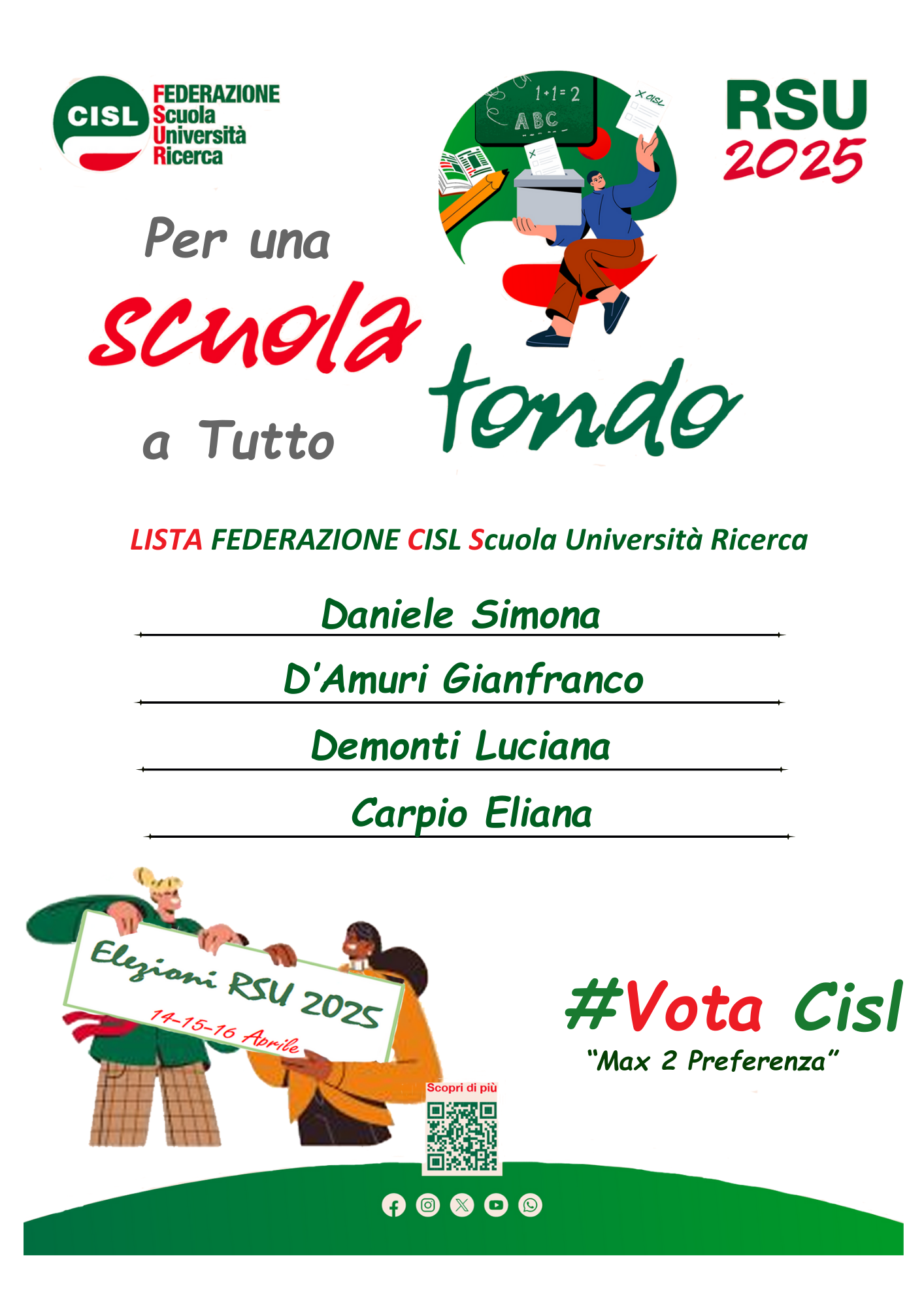 Lista della Federazione CISL Scuola Università e Ricerca relativa alle elezioni RSU del 14, 15 e 16 aprile 2025