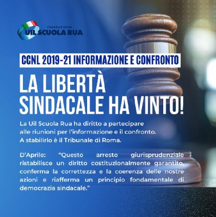 Sentenza del Tribunale di Roma: “La Uil Scuola Rua ha diritto a partecipare alle riunioni per l’informazione e il confronto”