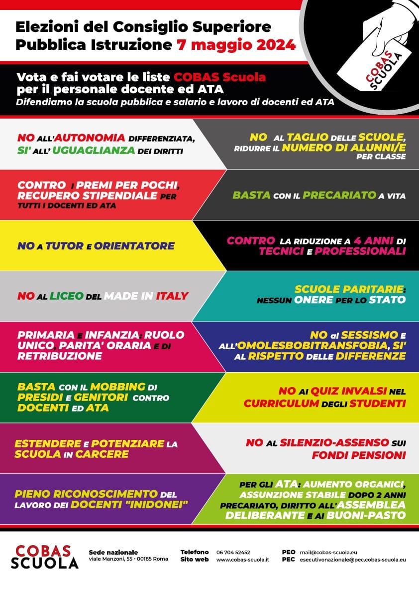 Presentazione Candidati e Programma Elezioni C.S.P.I. Cobas