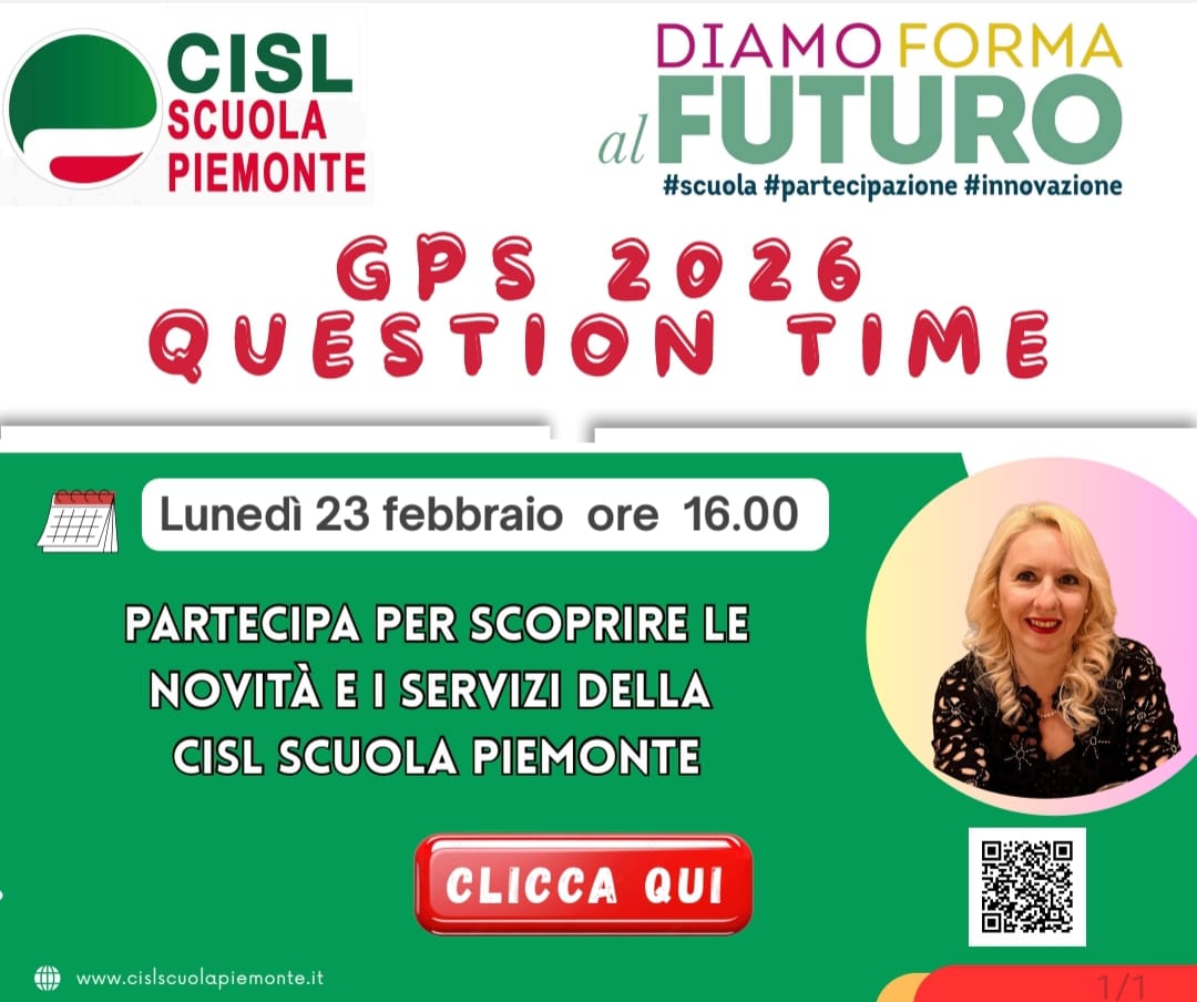 POSTA CERTIFICATA: Question Time GPS 2026–2028 – Incontro informativo CISL Scuola Piemonte