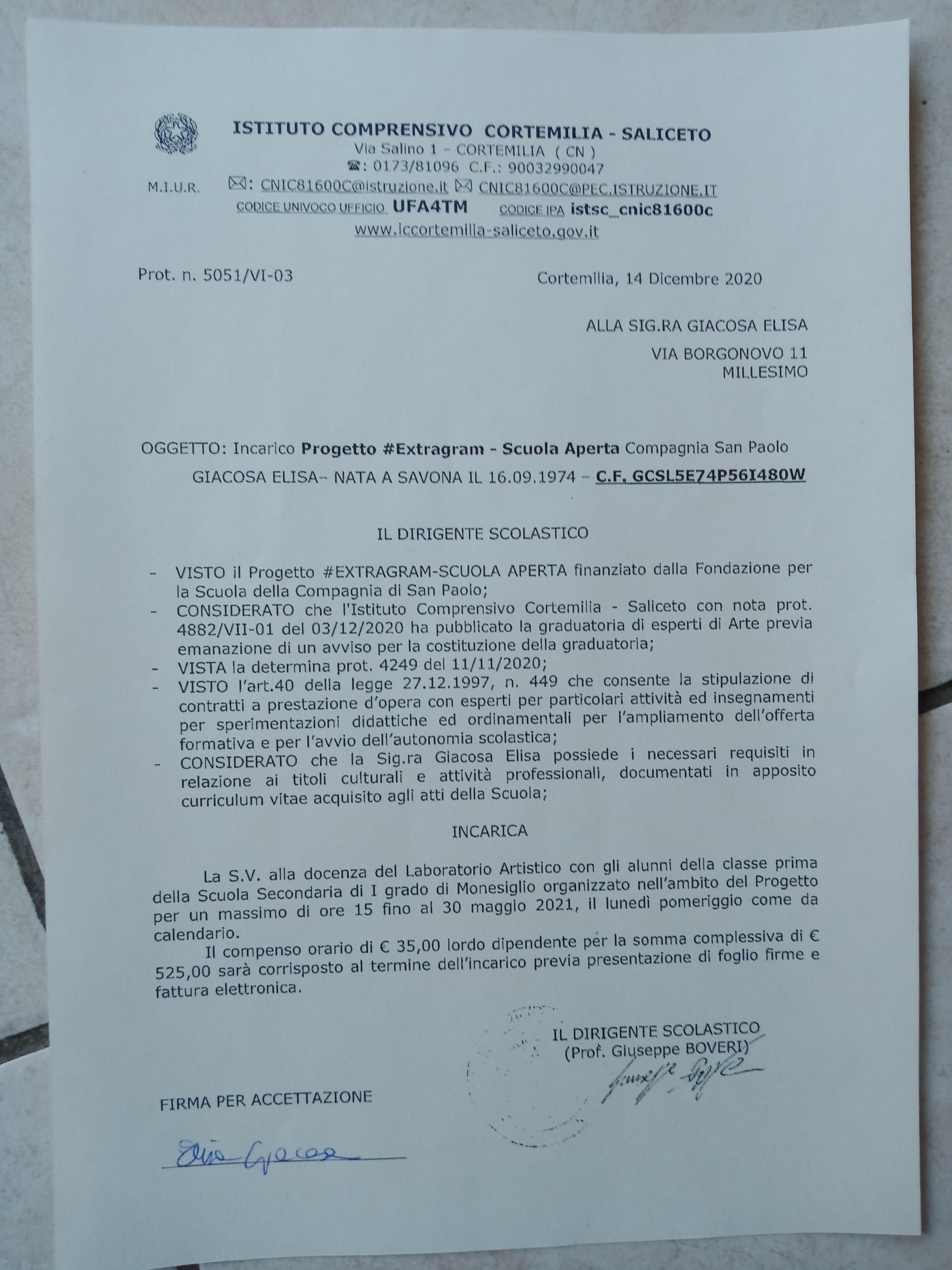 INCARICO PER LABORATORIO ARTE SCUOLA APERTA